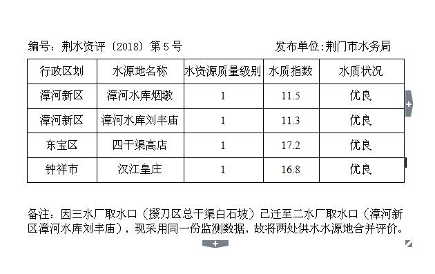 荆门市主要供水水源地水资源质量报告(2018年5月)