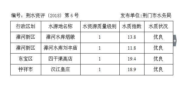 荆门市主要供水水源地水资源质量报告(2018年6月)